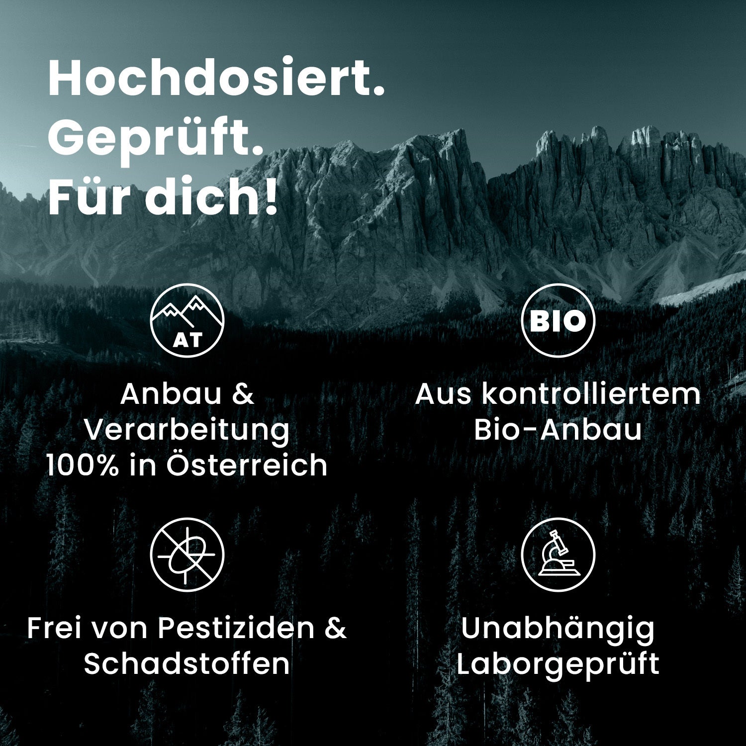 Bei Tyroler Glückspilze verbinden wir jahrelange Forschung mit modernster Technologie, um dir Vitalpilze von höchster Qualität anzubieten. Unsere Pilze aus Tirol sind bio-zertifiziert (AT-BIO-701) und dank geschützter Aufzucht rein und konstant in ihrer Qualität.
